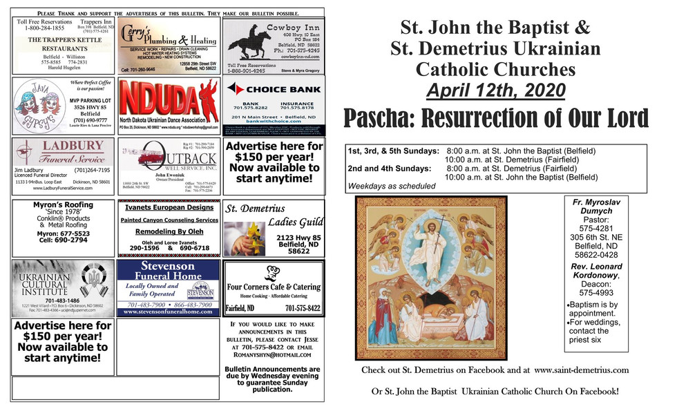 April 12th, 2020 Church Bulletin