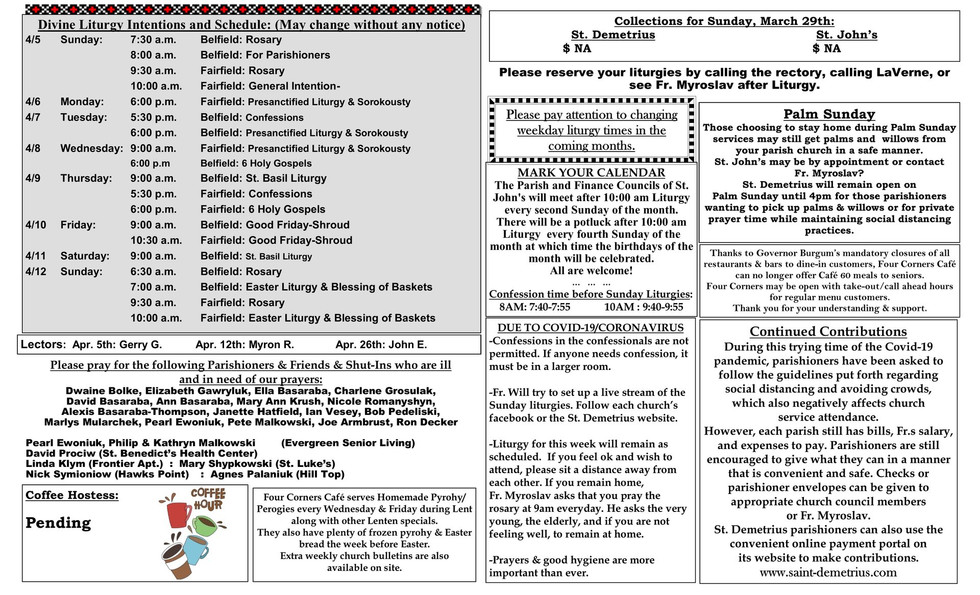 April 5th, 2020 Church Bulletin